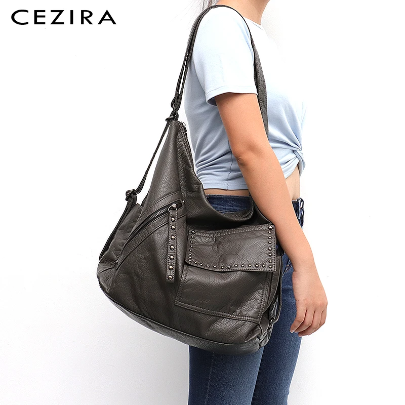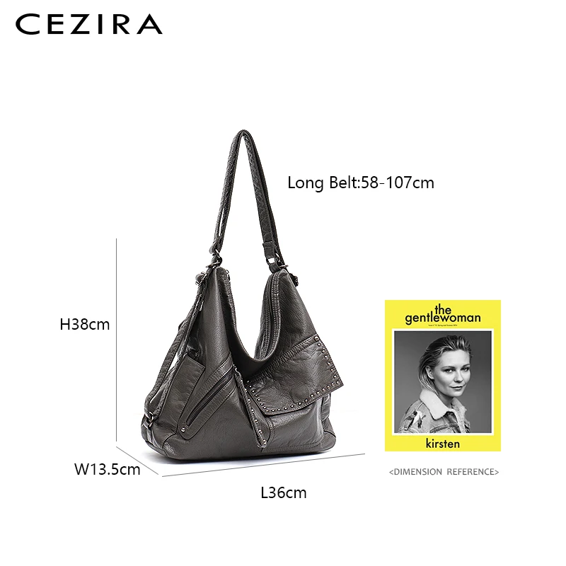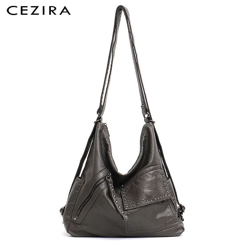 CEZIRA Women Luxury Washed Vegan Leather Shoulder Bag Large Backpack Girls Fashion PU School Bag Ri