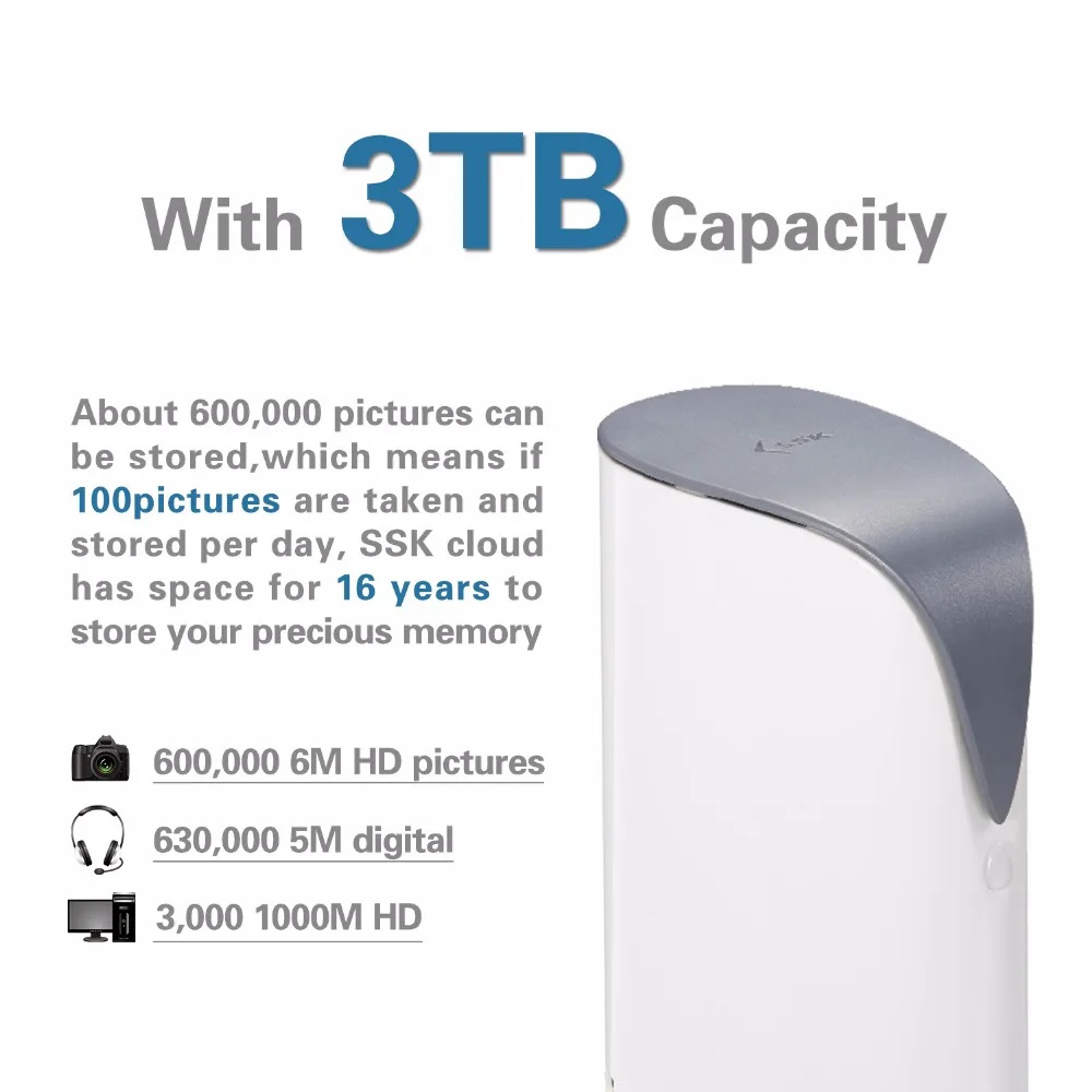 SSK 3.5 Inch 3TB Wireless WiFi Smart Hard Disk Family Cloud Hard Drive Smart External Hard Drive fo