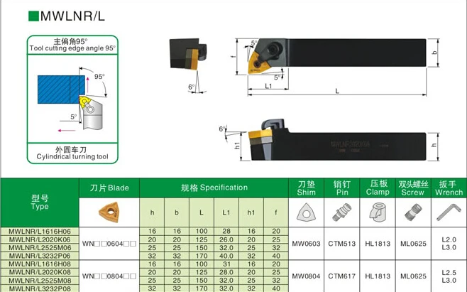 1PCS MWLNR1616H06 MWLNR2020K06 MWLNR2525M06 MWLNR1616H08 MWLNR2020K08 MWLNR2525M08 MWLNL CNC Lathe