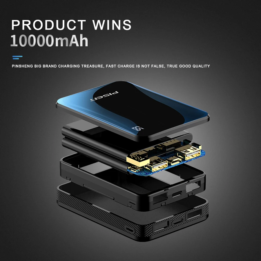 PISEN 10000mAh Power Bank Portable Charger Mobile Phone Digital Display External Battery Pack Dual