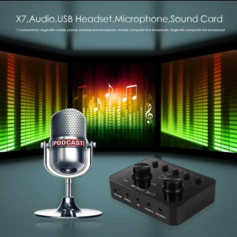 X7 Audio USB 3.5mm Headset Microphone Webcast Personal Entertainment Streamer Live Sound Card Noise