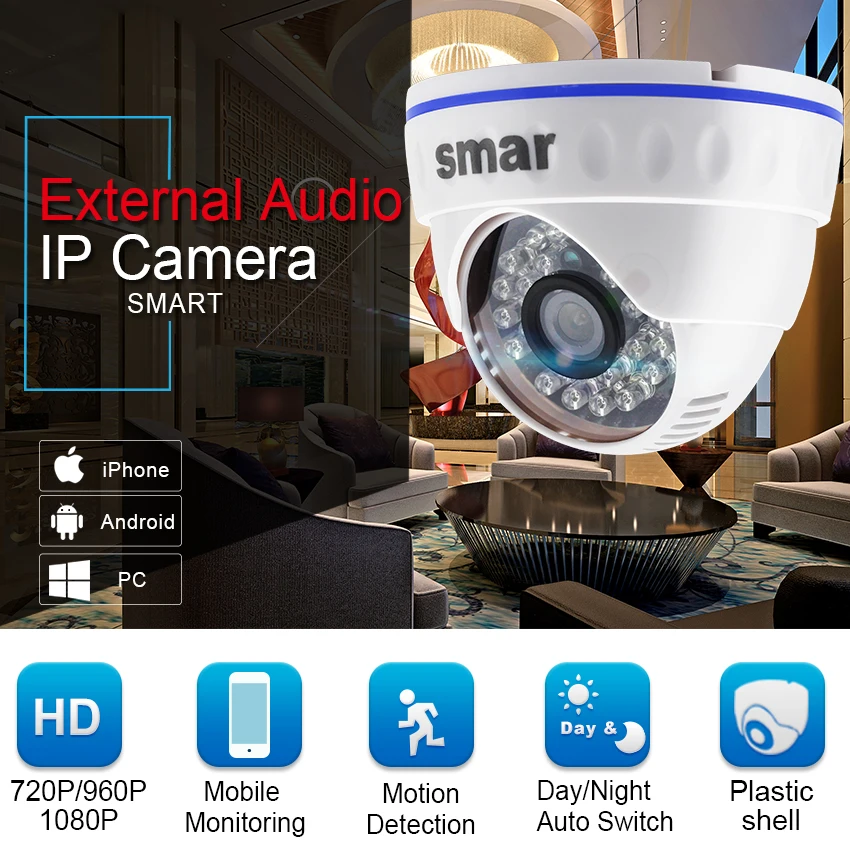 Onvif HD 720P 960P 1080P IP Camera Support Audio Suppor External Microphone Pickup Day Night Dome C